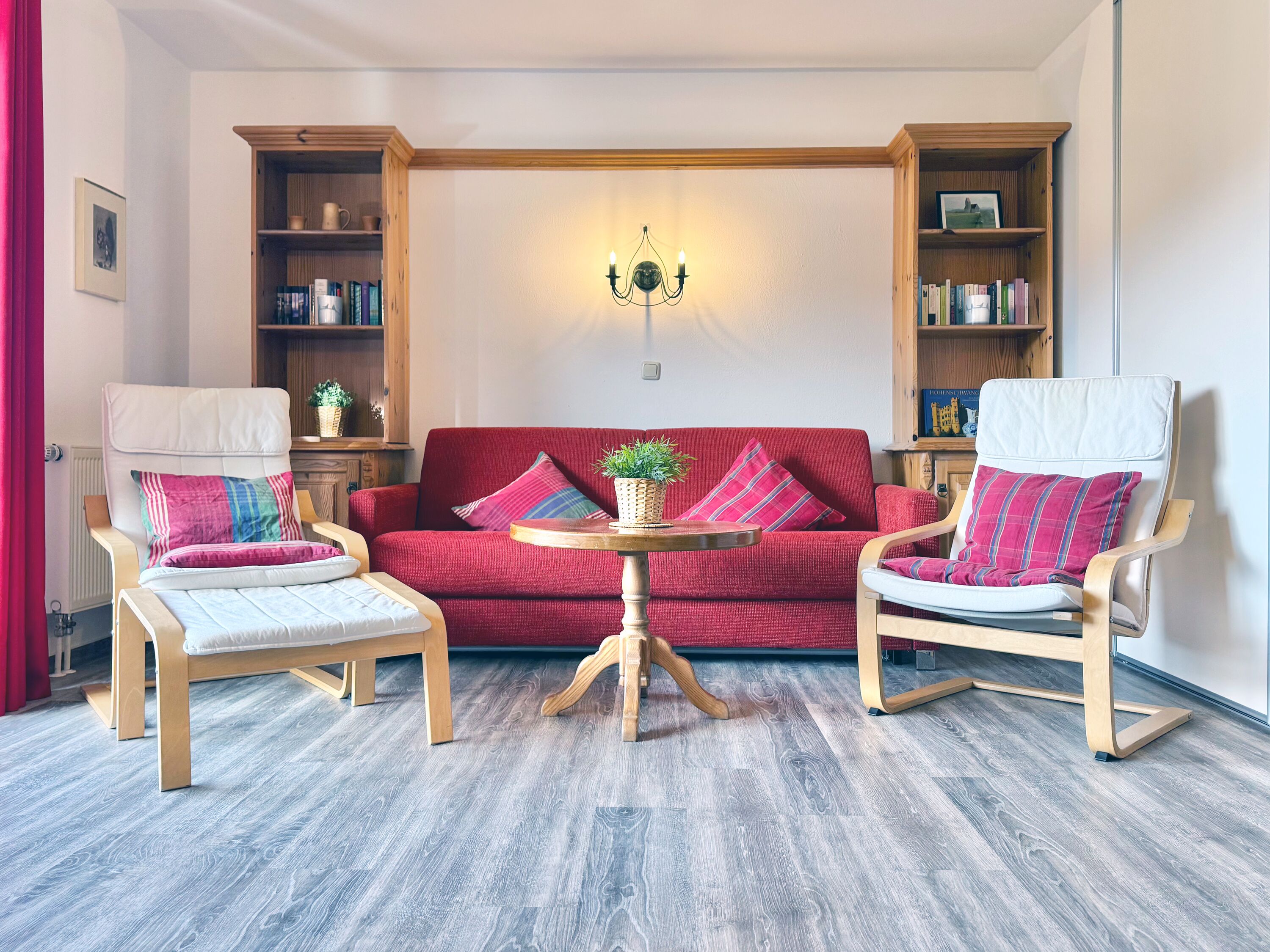 Die Ferienwohnung 08 im Sonnenhof Seeg eignet sich ideal für Paare, Familien oder Gäste mit Hund, die Wert auf Ruhe, Komfort und eine naturnahe Umgebung legen.