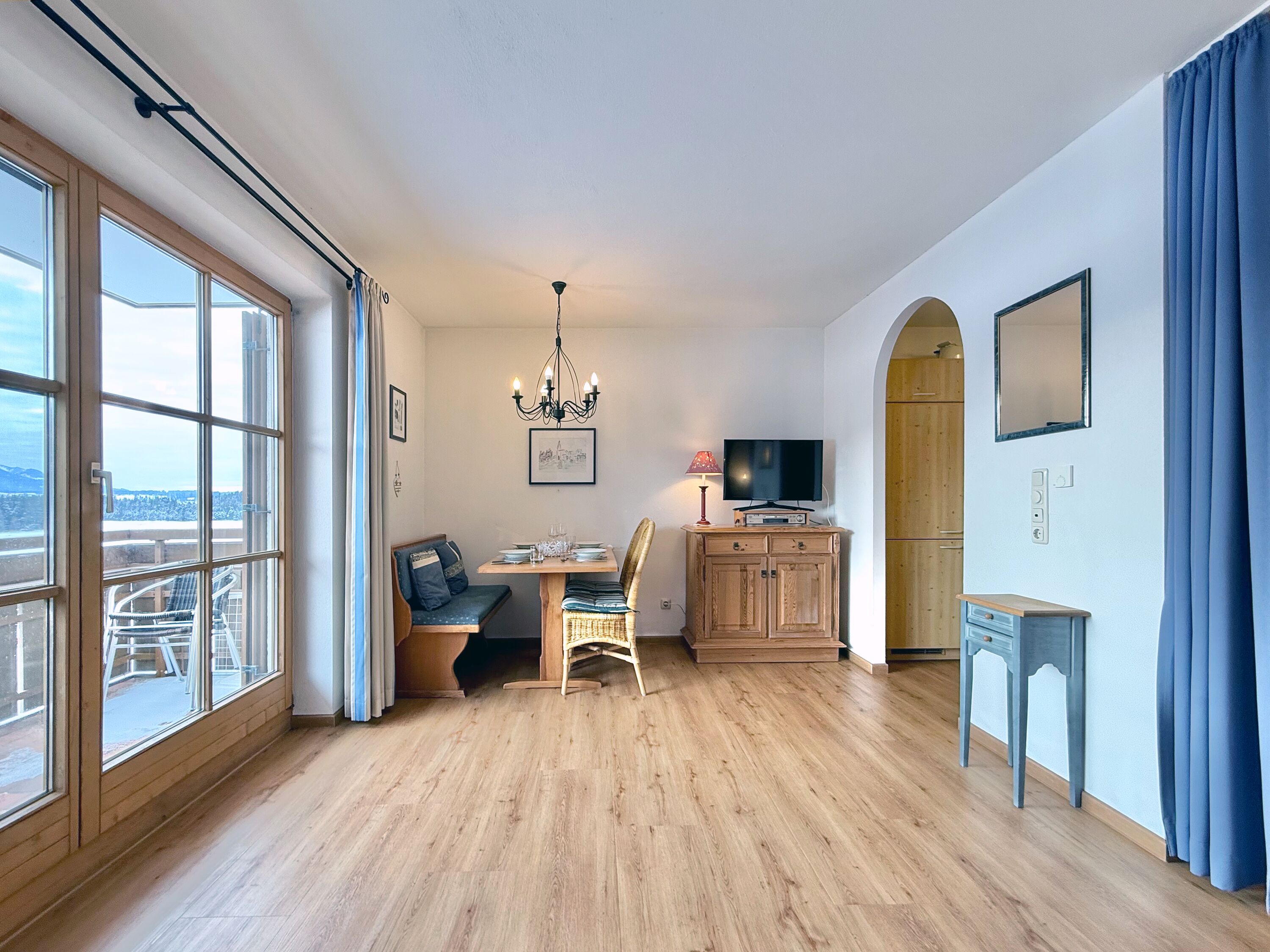 Die Ferienwohnung 09 im Sonnenhof Seeg eignet sich ideal für Paare oder Familien, die Wert auf ein traditionelles Wohngefühl, Ruhe und eine naturnahe Umgebung legen.