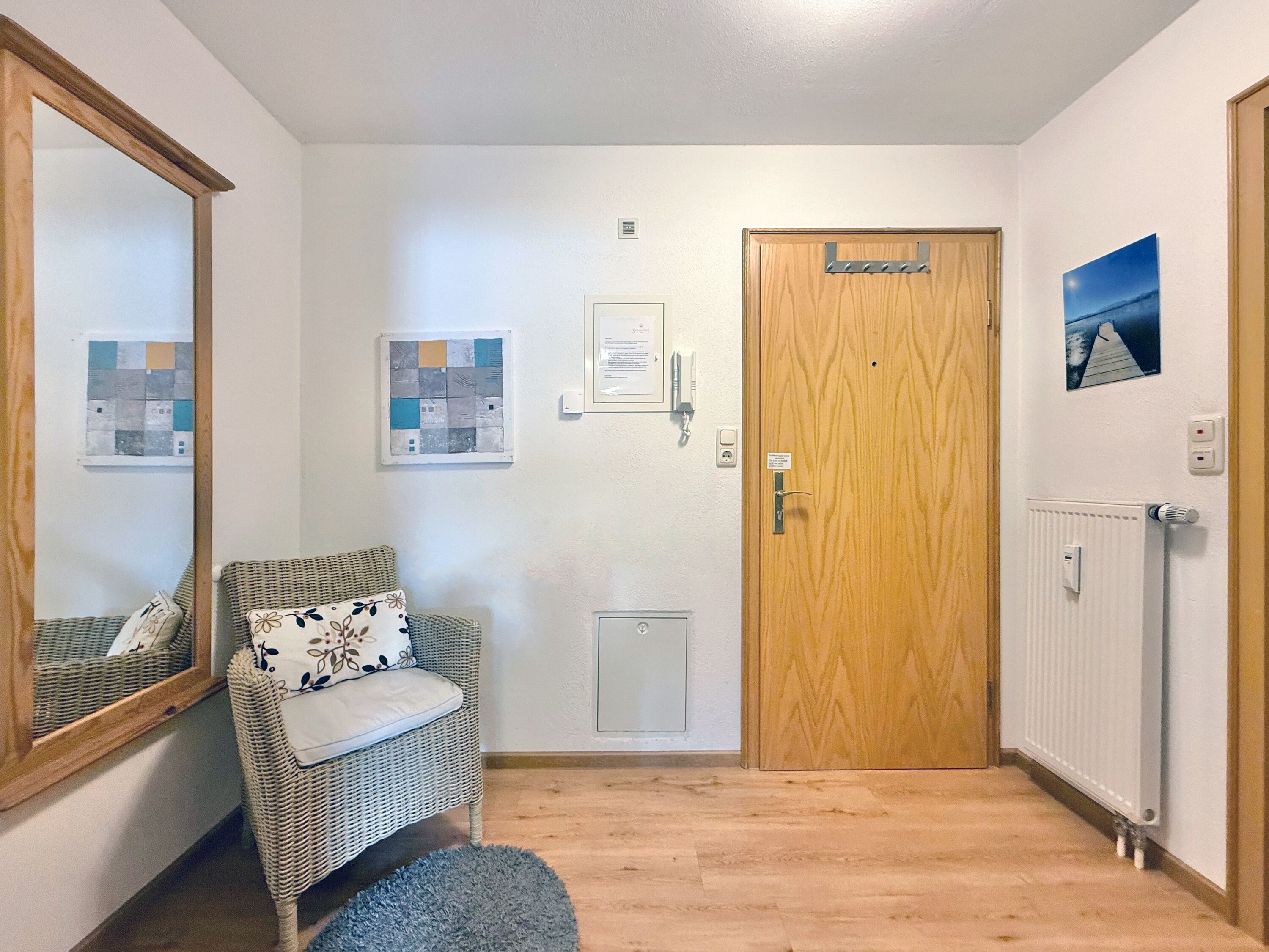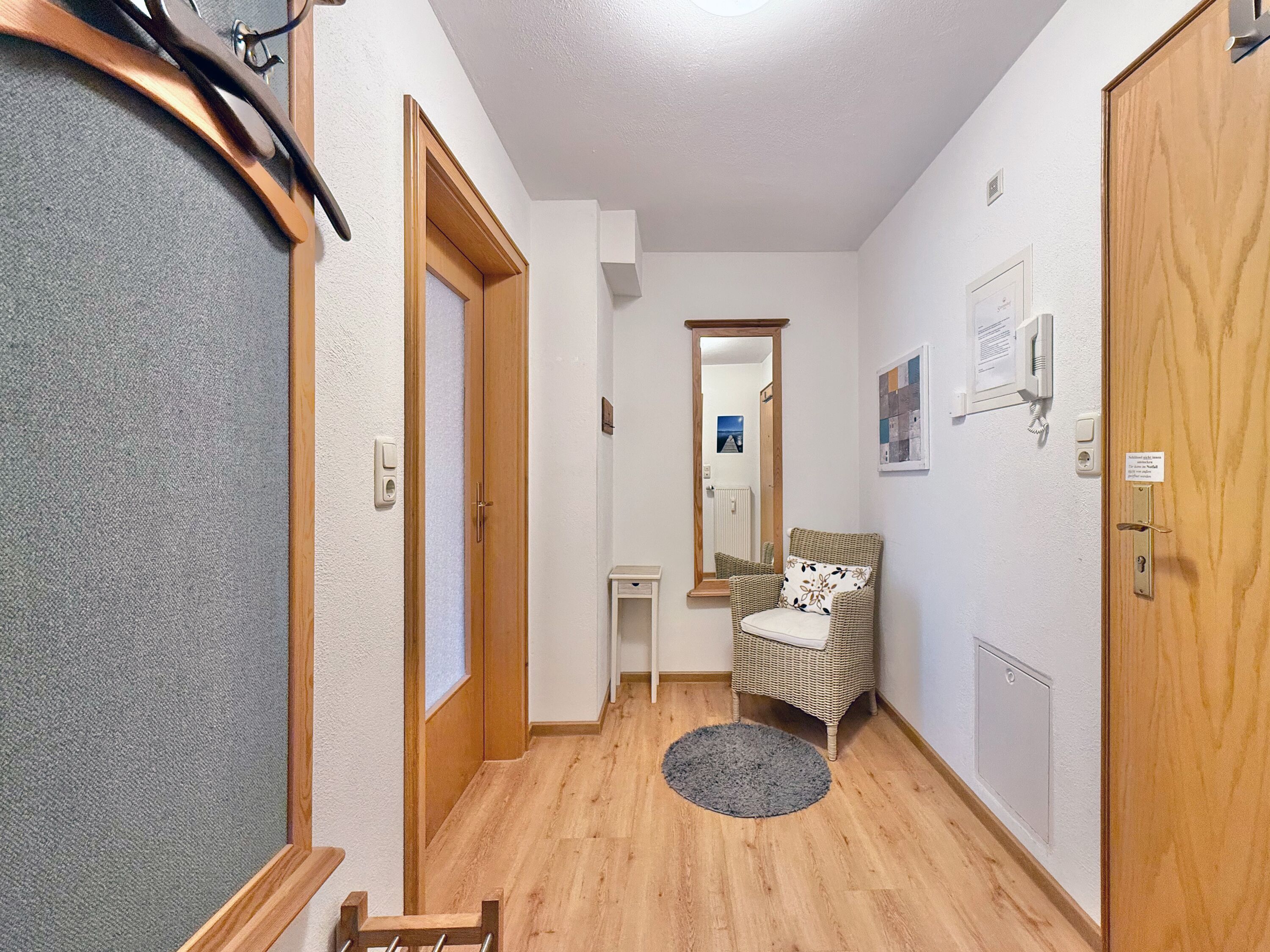 Zur Ausstattung gehören WLAN, ein TV Flachbildschirm sowie eine Küche mit Spülmaschine. Ein eigener Parkplatz steht direkt am Haus zur Verfügung. Fahrräder können sicher im abschließbaren Fahrradraum untergebracht werden. Für gesellige Stunden steht eine Grillmöglichkeit bereit, auf Wunsch kann ein Brötchenservice genutzt werden. Die Wohnung ist eine Nichtraucherwohnung, Haustiere sind nicht erlaubt.