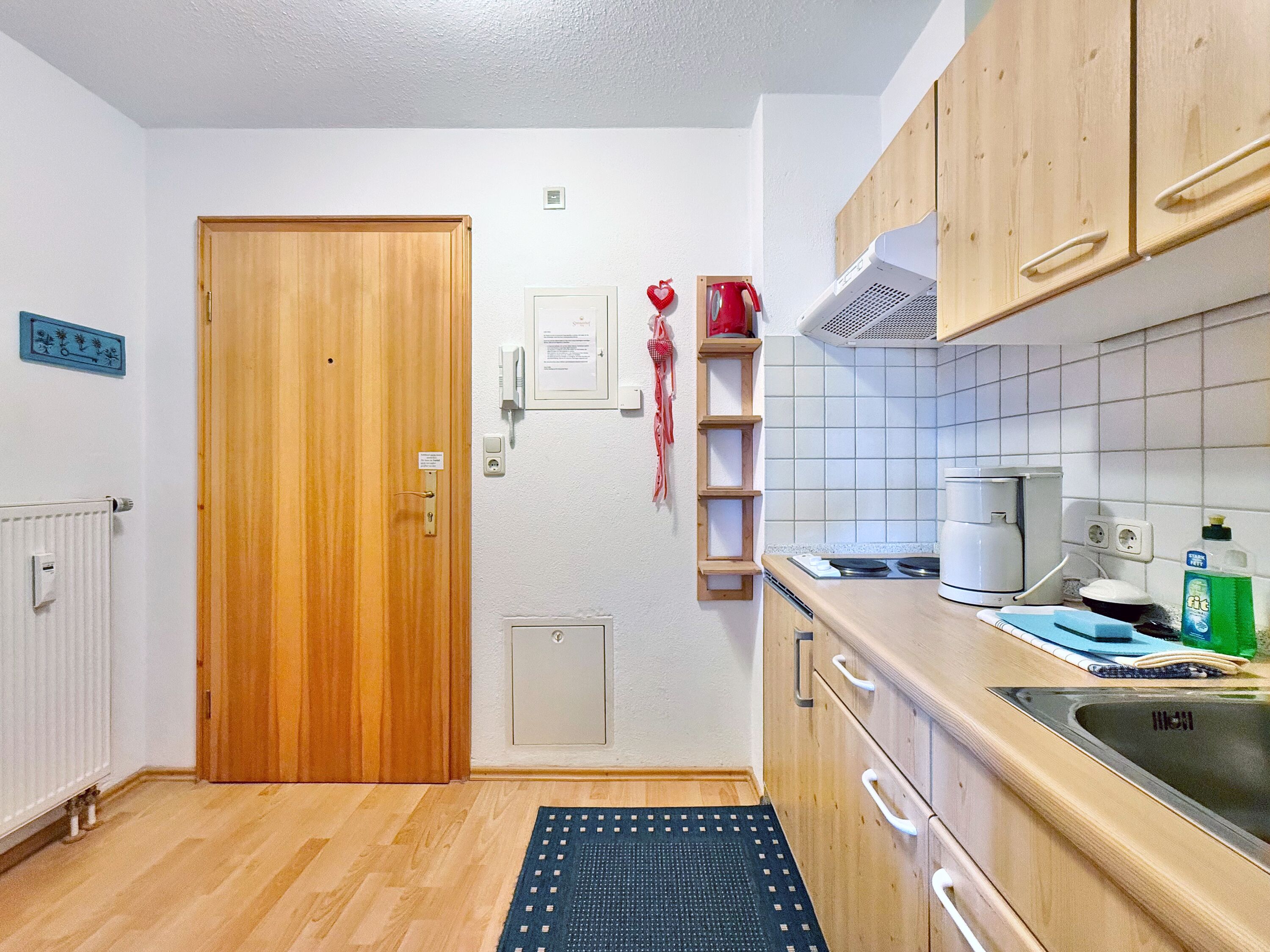 Zur Ausstattung gehören WLAN sowie ein eigener Parkplatz direkt am Haus. Fahrräder können sicher im abschließbaren Fahrradraum untergebracht werden. Für gesellige Stunden steht eine Grillmöglichkeit im Garten bereit, auf Wunsch kann ein Brötchenservice genutzt werden. Ein Hochstuhl sowie ein Reise- bzw. Kinderbett können bei Bedarf separat dazugebucht werden. Die Wohnung ist eine Nichtraucherwohnung, Haustiere sind nicht erlaubt.
